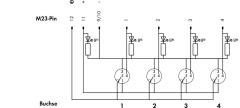 757-144 M12, 4 yollu, 4 kutuplu, M23 konnektörlü LED’ li