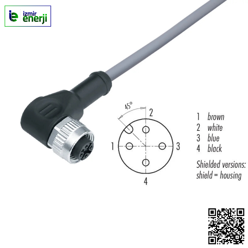 M12 4 Pın 90° Dişi 2mt Kablolu Sensör Soketi