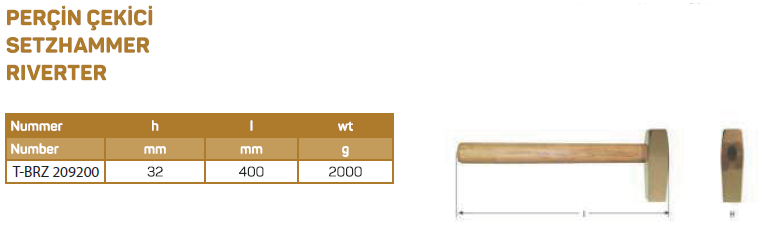 Kıvılcım Çıkarmaz Ex-Proof 32 x 400 mm / 2000g Perçin Çekici
