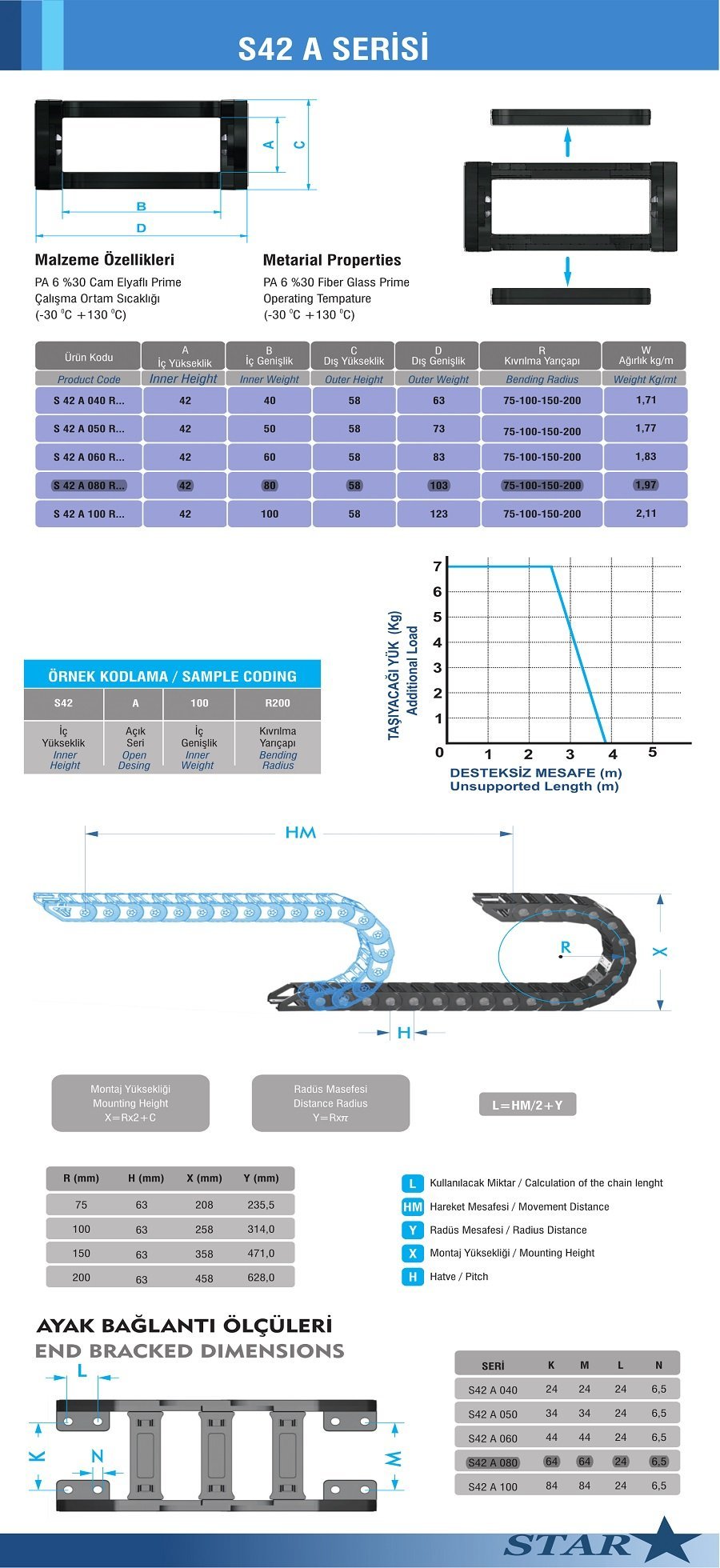 Hareketli Kablo Kanalı S42 Plastik Orta Açık Seri 080